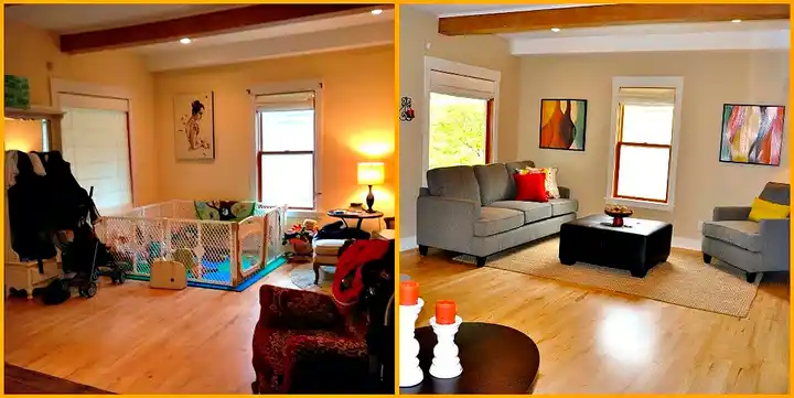 - Уберите лишние вещи. Освободите пространство в квартире, чтобы она выглядела более просторной и уютной. Избавьтесь от ненужных вещей и мебели, которые могут создавать впечатление загроможденности.